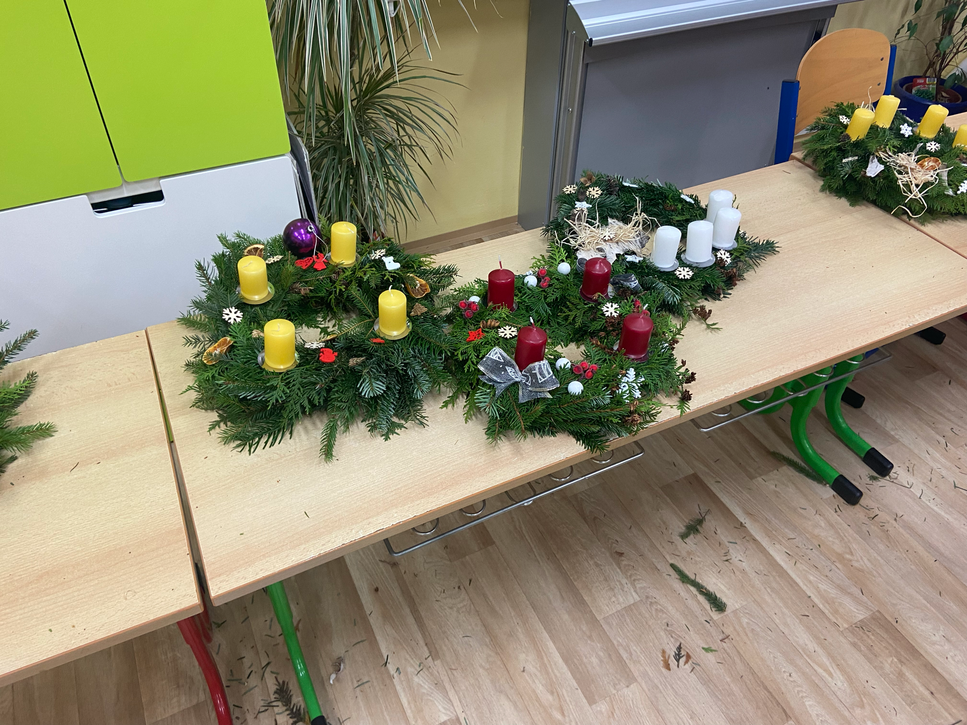 Podle sezóny vyrábíme například adventní a mechové věnce, dřevěné velikonoční domečky, betlém ze dřeva, keramické ozdoby na stromeček nebo mozaikové adventní věnce.