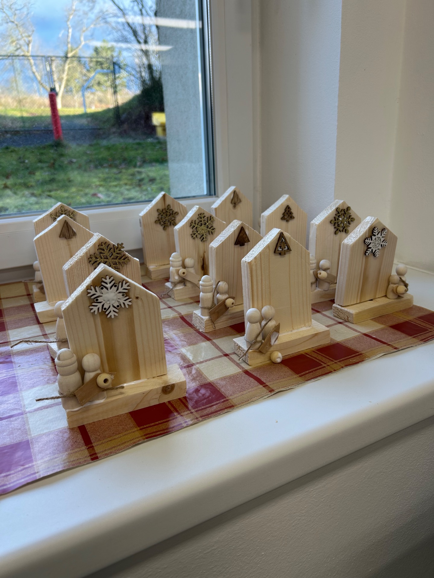 Každé dítě si z přírodního materiálu vyrobí vlastní dřevěný výrobek, který si odnese domů – letadélko, vor, betlém, velikonoční dekorace, budka, zajíc, kočička.